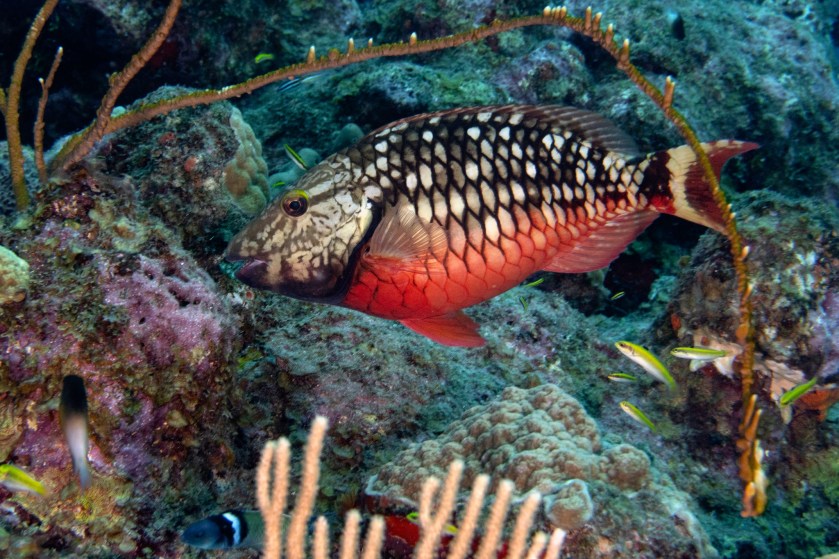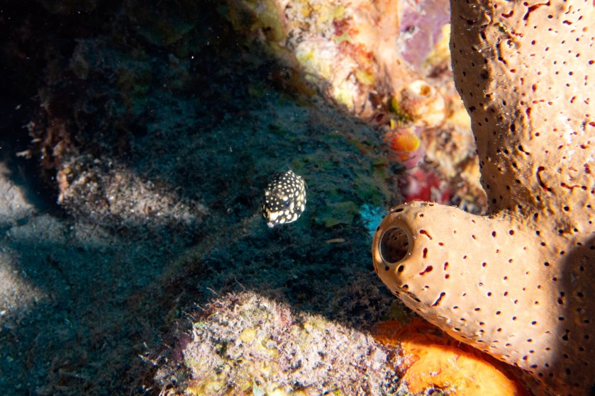 And then there was the diving! The thing I love most about diving on Saba is the diversity of the dive sites. Saba has geologic reefs on the leeward side, biologic reefs on the windward side, sea mounts (The Pinnacles), patch and loaf reefs, turtle grass flats, and walls. This means a wide variety of fish and sea life. Here’s some photos taken during my trip from my long time Saba friends Beth and Tom: