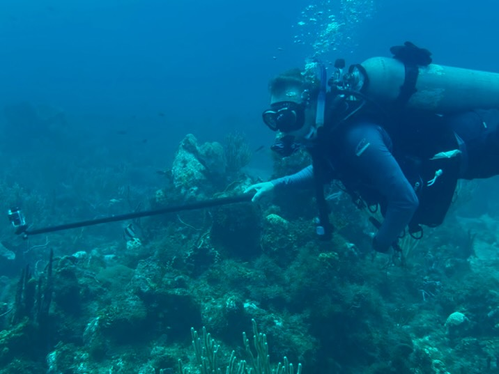 Dr. Pieter Johnson is a disease ecologist who aims to understand the pervasive yet cryptic role of parasites in pathogens in ecological systems. In the photos above, Dr. Johnson provides an overview of the parasite problem, then leads us in a survey on the reef to count surgeon fish with the black spots that indicate presence of the parasite.