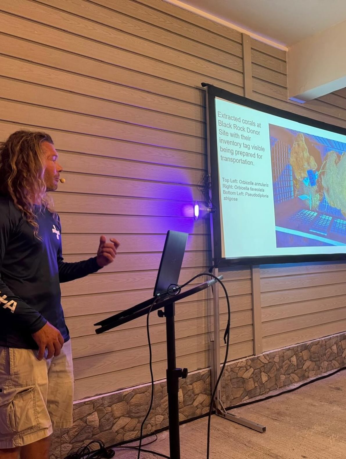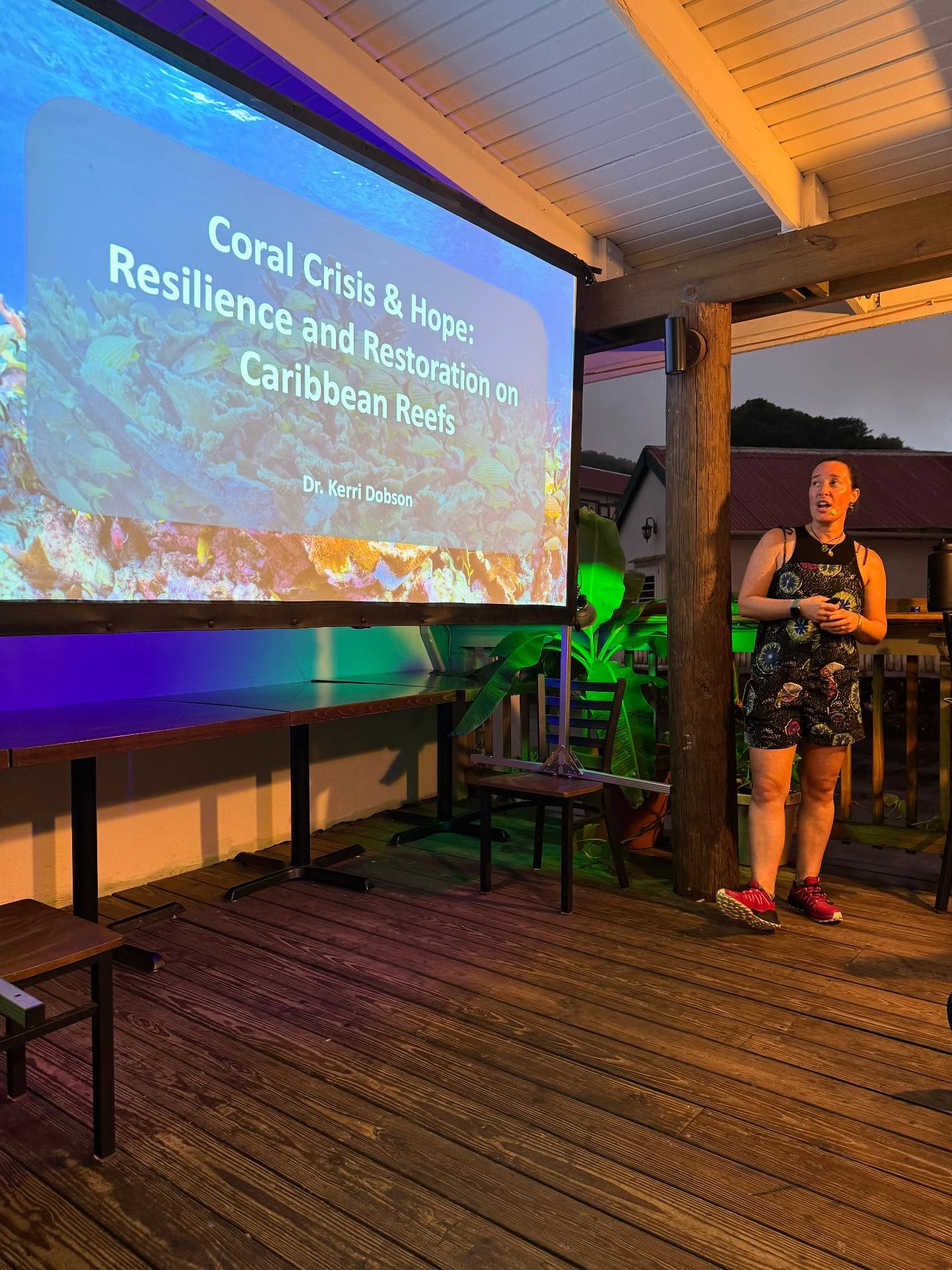 Kerri Dobson is a marine biologist with expertise in coral reef ecology and conservation. Her presentation explained how different types of algae may encourage of discourage the growth of coral polyps. The next day, Ms. Dobson lead us on a survey of algae types on the reef.